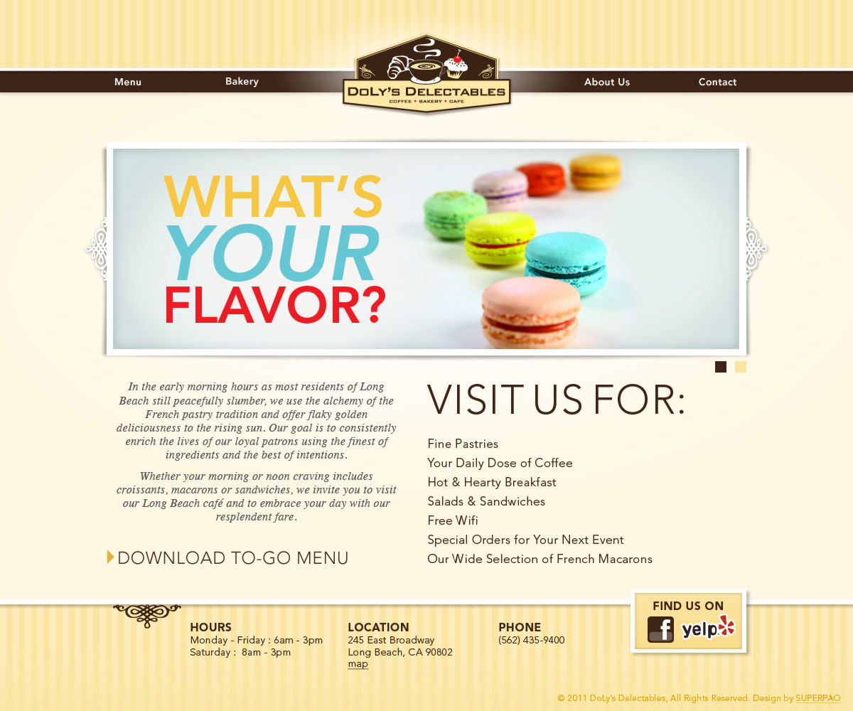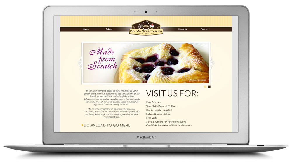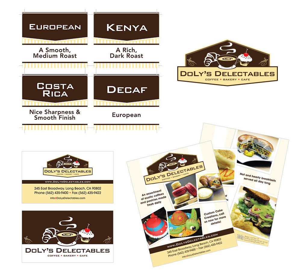 Doly's Delectables, Long Beach. Complete development of all marketing materials, brand & signage.