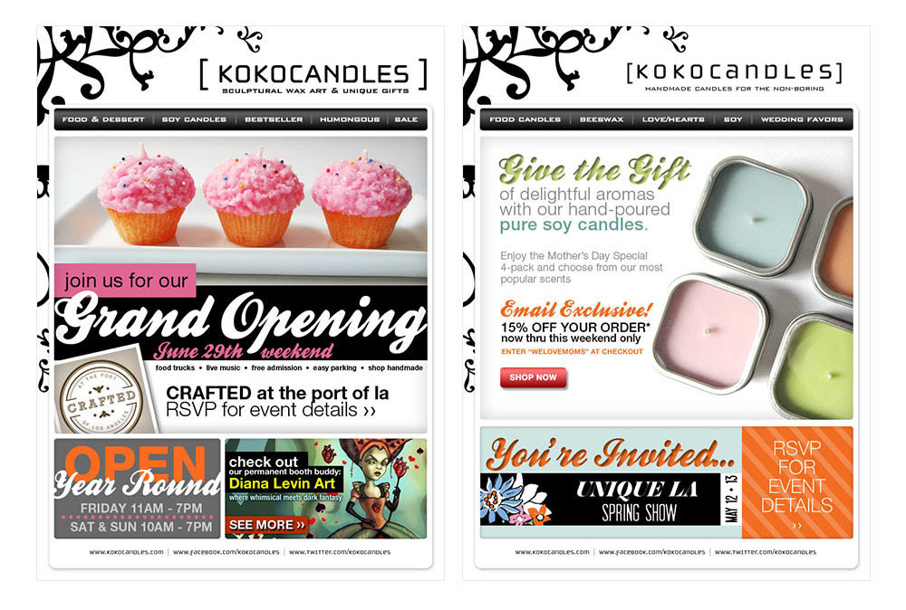 KOKOCANDLES, Los Angeles. Complete branding and design for the premiere candle brand, based in Downtown Los Angeles. Social media implementation, email marketing, packaging design, print & web design.