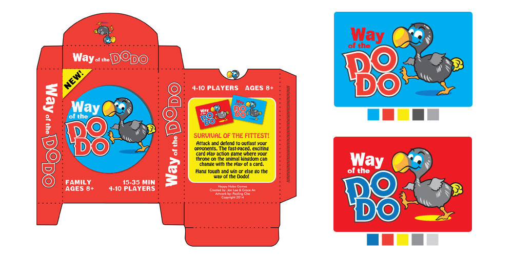 Logo, packaging design and game graphics for "Way of the DODO." This multi-player game challenge players to take "the survival of the fittest" to the next level!
